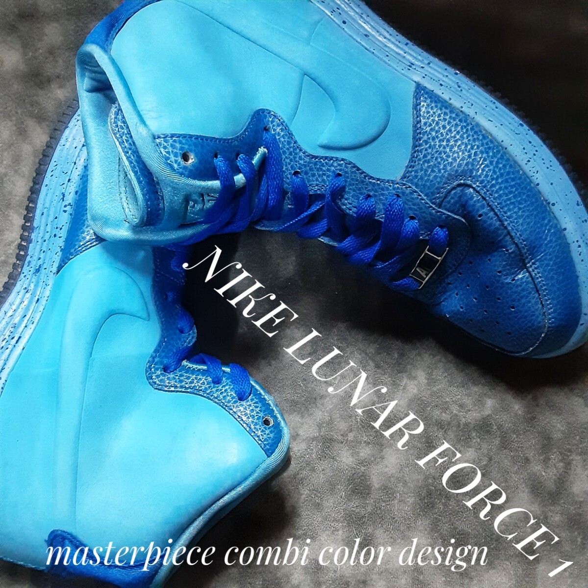 > 最値!希少13年製!シボレ柄デザイン!名作コンビカラー!ナイキ ルナフォース 1高級スニーカー!ターコイズブルー!青水色 レアサイズ 25cm