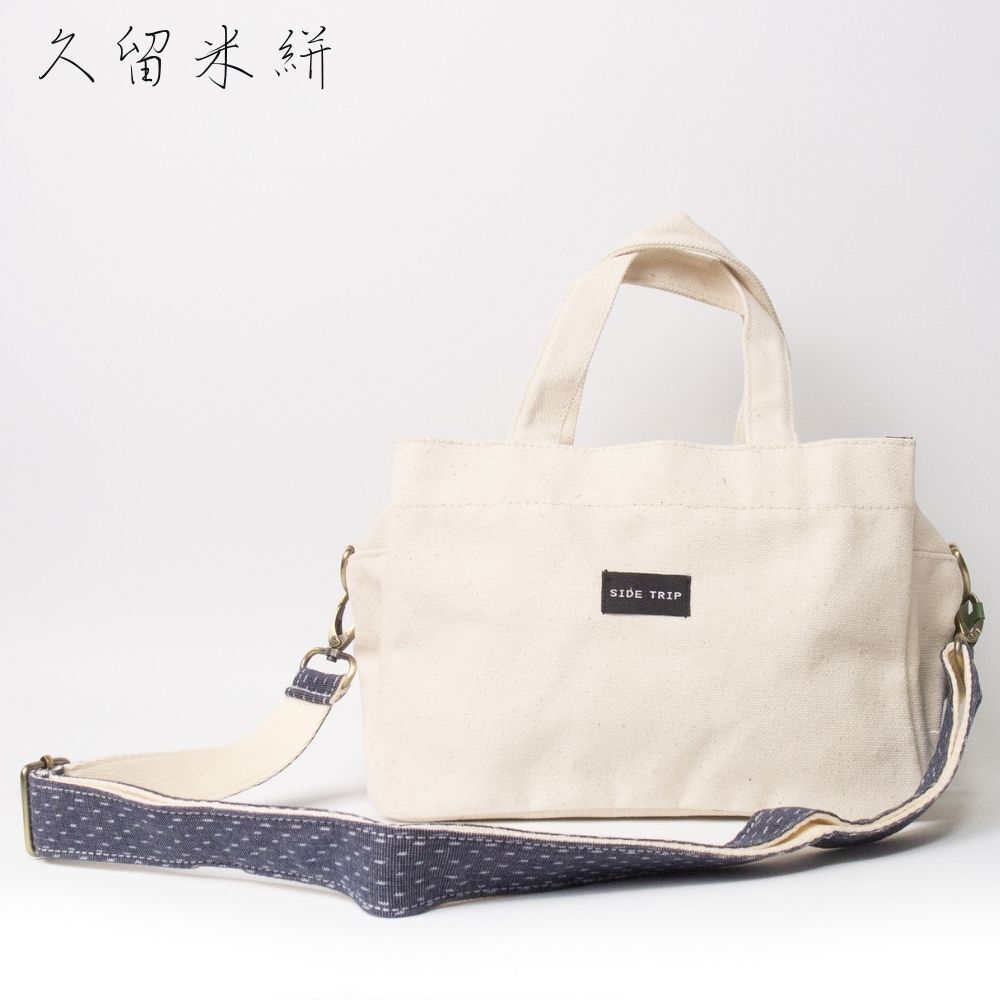 - 新品 久留米絣 コットンキャンバス 2WAY ミニトートバッグ ナチュラル