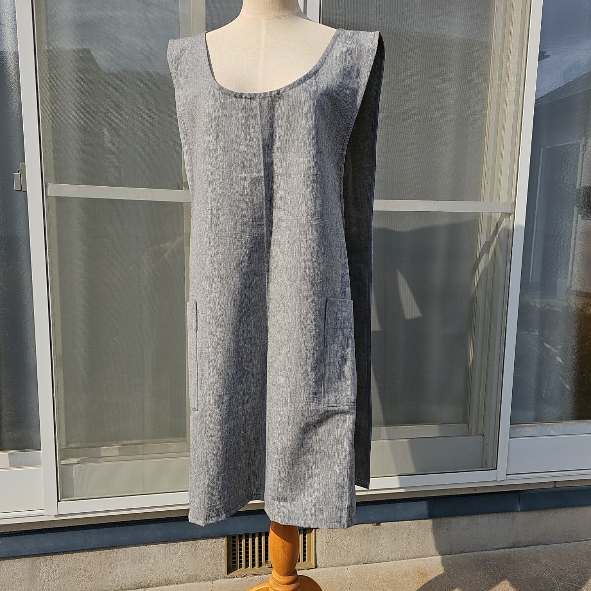 - 即決 送料込 ハンドメイド バッククロスエプロン 綿コットン ダンガリー 灰色グレー 大きいサイズ チュニック ベスト 4L5L ハンガータグ