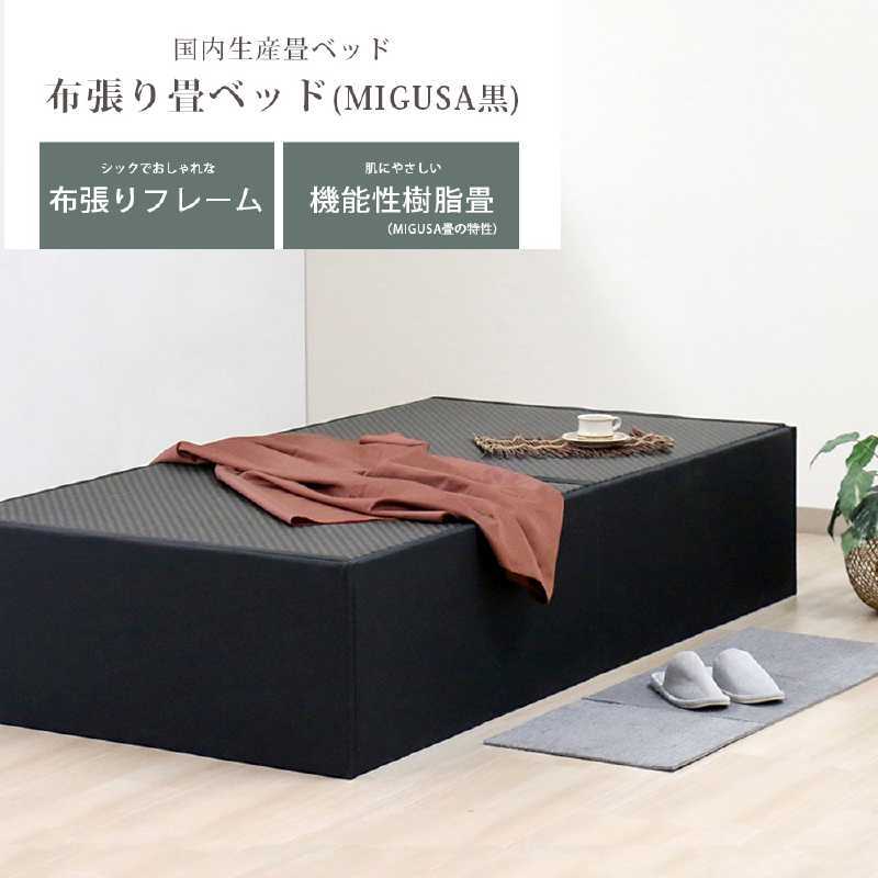 > かっこいい畳ベッド シングル オールブラック フレーム布張り ボックス型フレーム