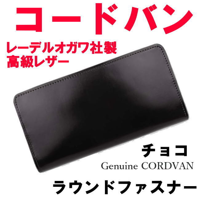- チョコ 濃茶 コードバン 馬革 1005 ラウンド長財布 レーデルオガワ社 高級レザー