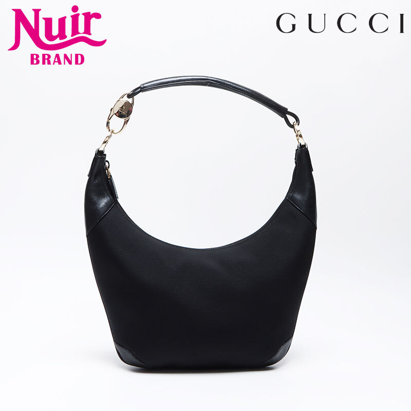 - グッチ GUCCI ショルダーバッグ キャンバス × レザー ブラック