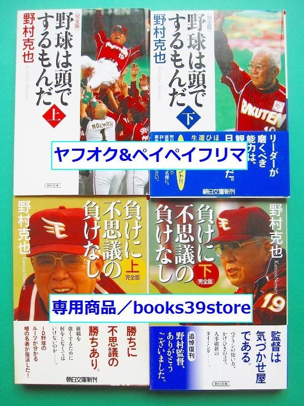 > 文庫-野村克也4冊/セット[完全版]野球は頭でするもんだ,負けに不思議の負けなし 上下巻/朝日文庫/送料無料・ポスト投函/2111c-V