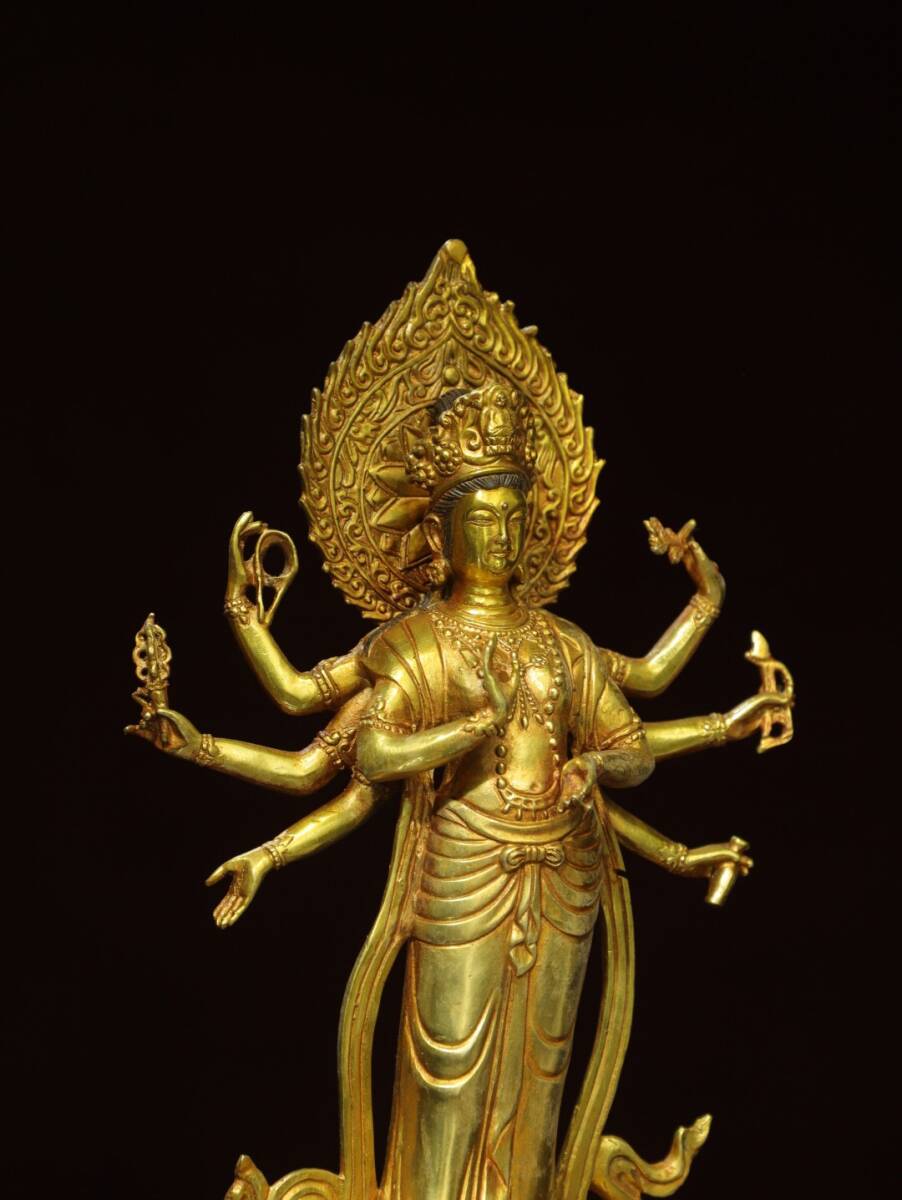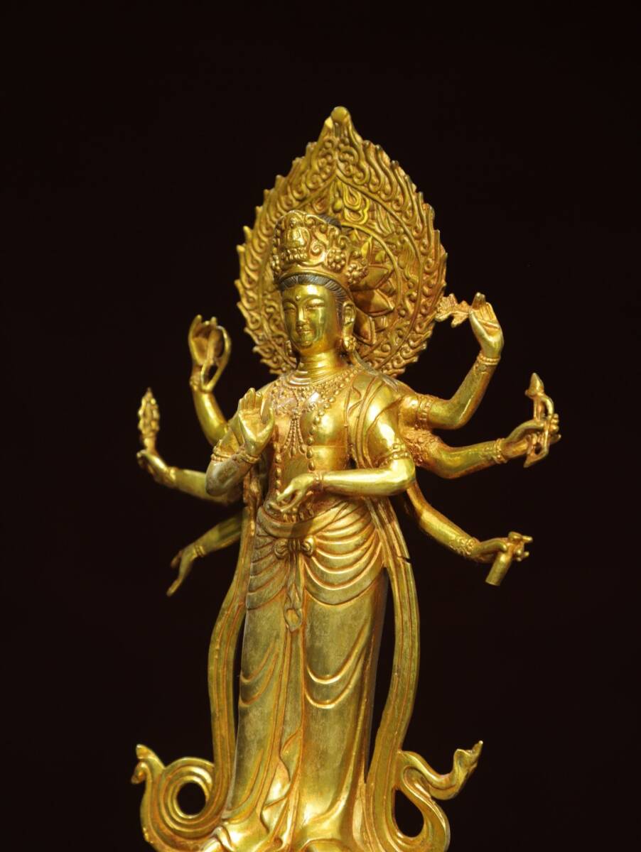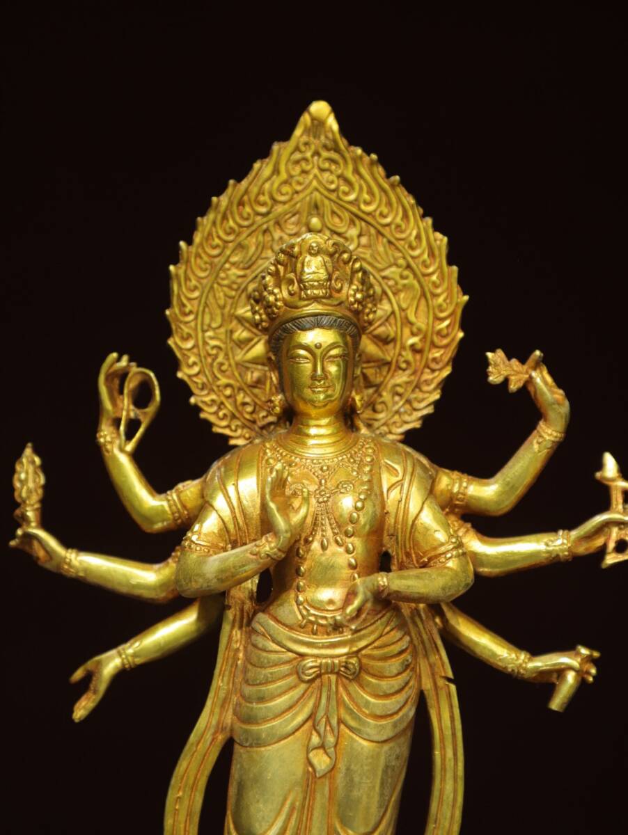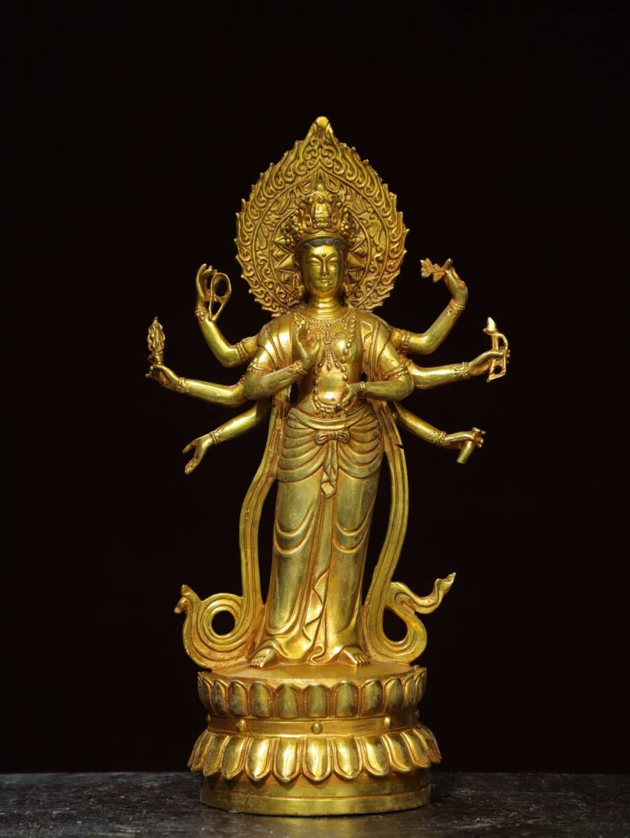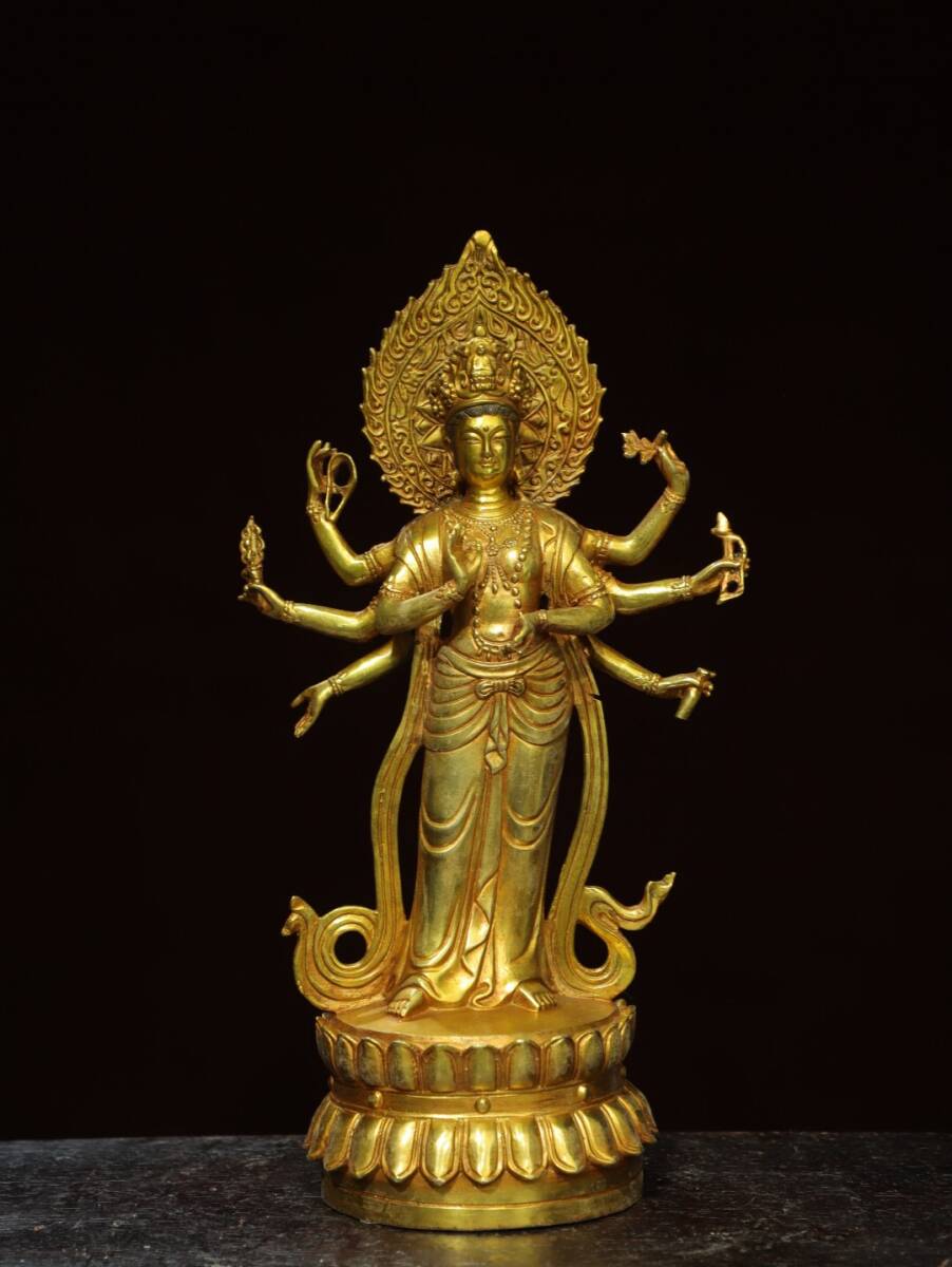 - ▽鴻▽ 銅製 塗金 八臂觀音像 置物 古賞物 中国古玩 中国古美術