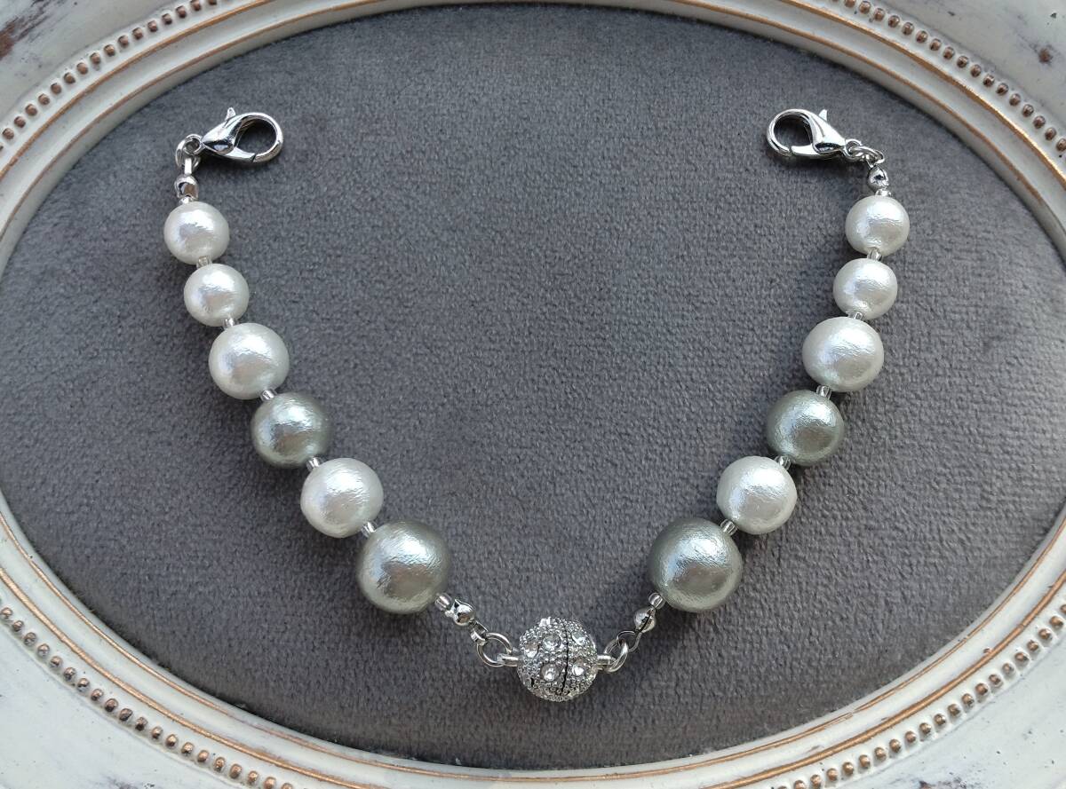 - コットンパールのマグネット羽織紐 シルバーグレーの羽織り留め