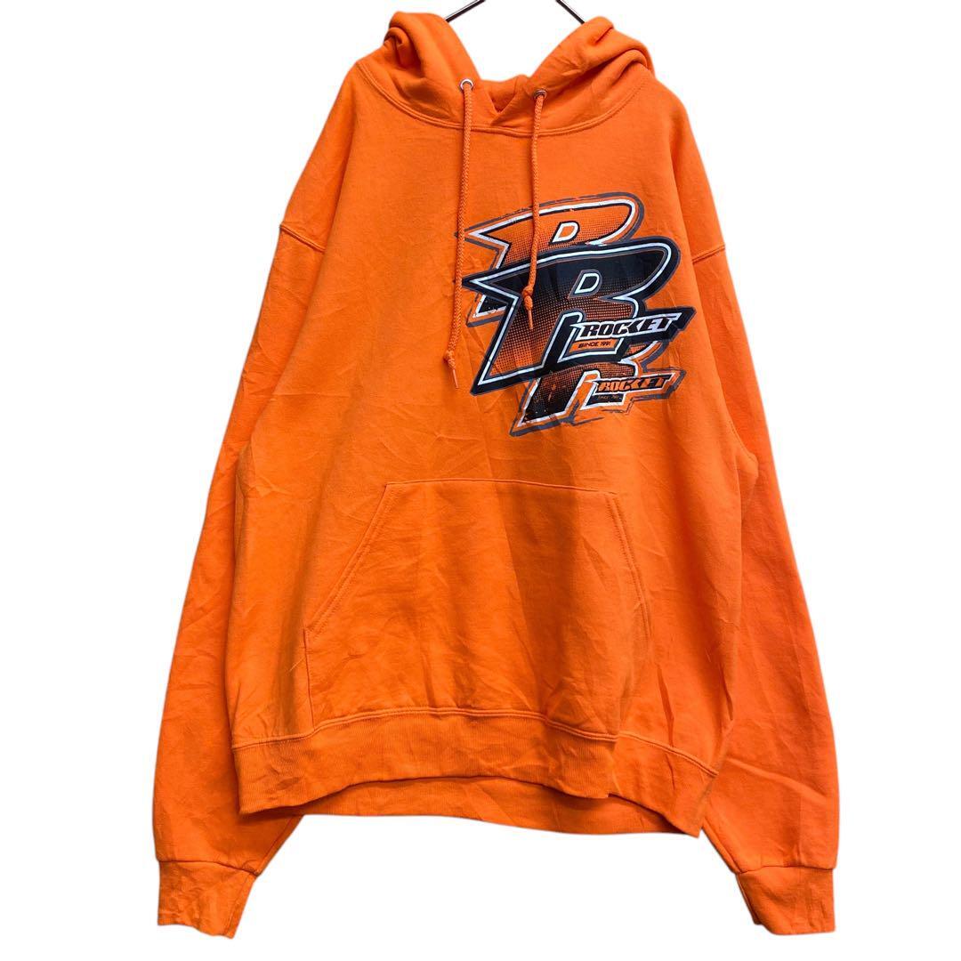 - ジャージーズ メンズパーカー 橙 M 背面&胸元プリント プルオーバー【2942
