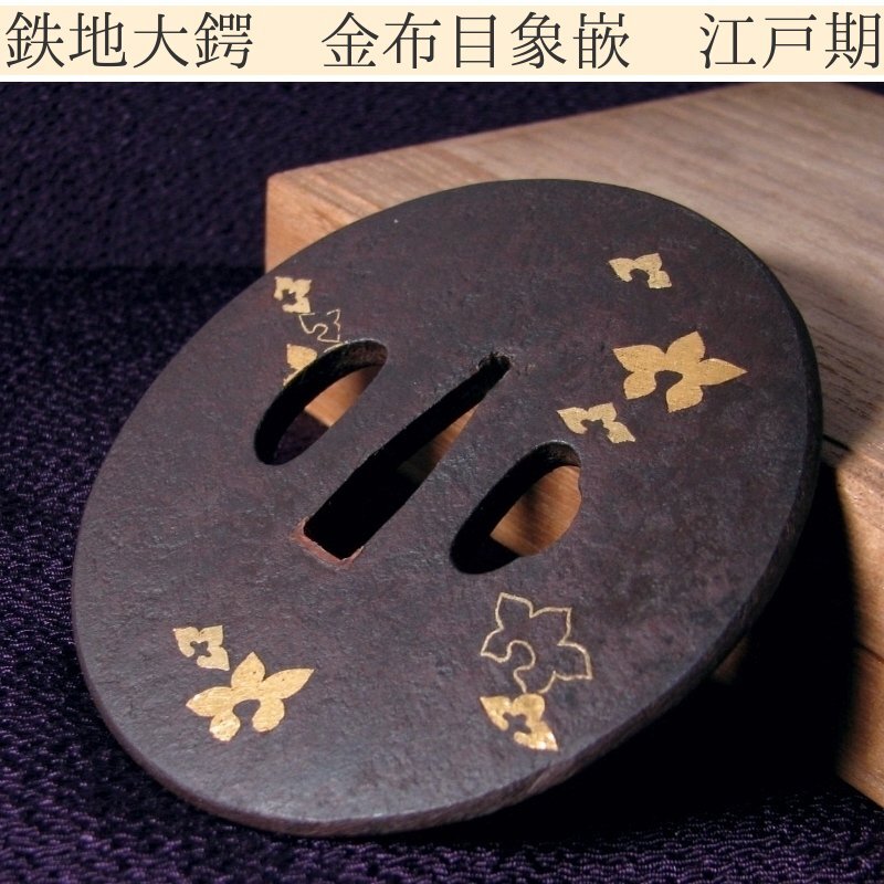 - 時代武具 鉄地大鍔 金布目象嵌 桐箱付 江戸時代/鐔/25a069
