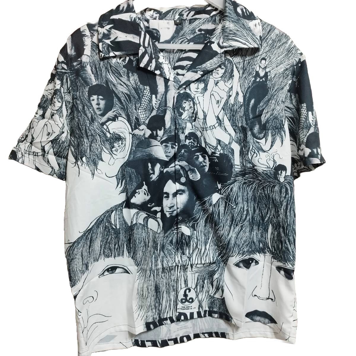 - 海外直輸入品★ザ・ビートルズ Beatles 『リボルバー(Revolver)』半袖シャツ【XLサイズ】開襟 総柄デザイン バンドT アロハ 新品