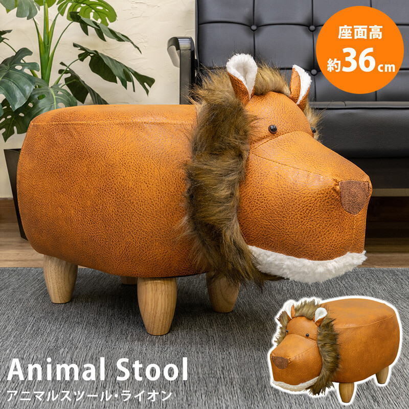 - アニマル動物スツール・ライオン ファブリック生地saka-om10br