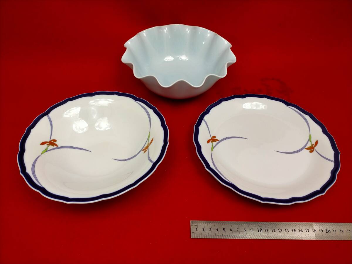 - 香蘭社 オーキットレーヌ 大皿&ボール 青磁 波型ボウル ・