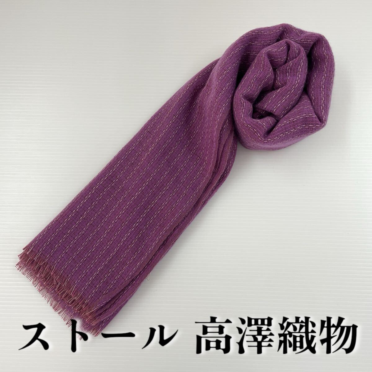 > 【ストール 高澤織物】未使用 ウール カシミヤ 春夏 スカーフ ショール 肩掛け 膝かけ 国産 日本製 防寒 日除け 紫 #0263-645Z6