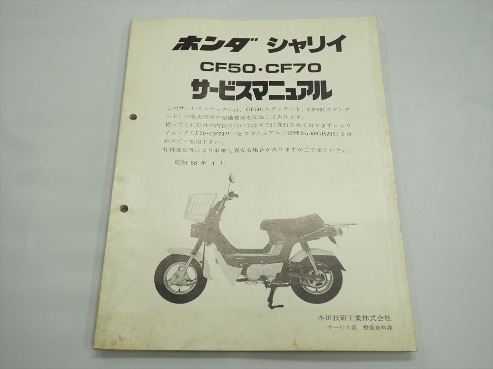 > シャリィ CF50 CF70 スタンダード 配線図有り ホンダ 追補版 サービスマニュアル 昭和58年4月発行
