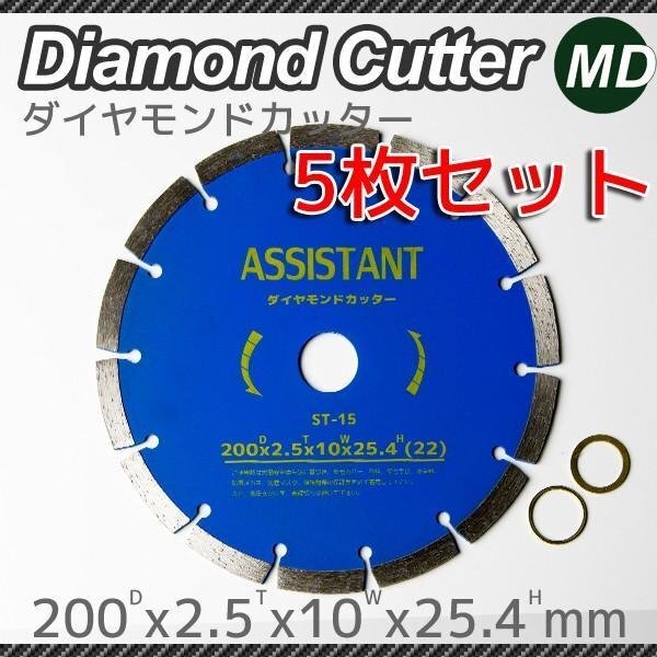 > 送料無料【5枚セット】 ダイヤモンド カッター 200mm 乾式&湿式 調整リング付き(22 / 20リング付)