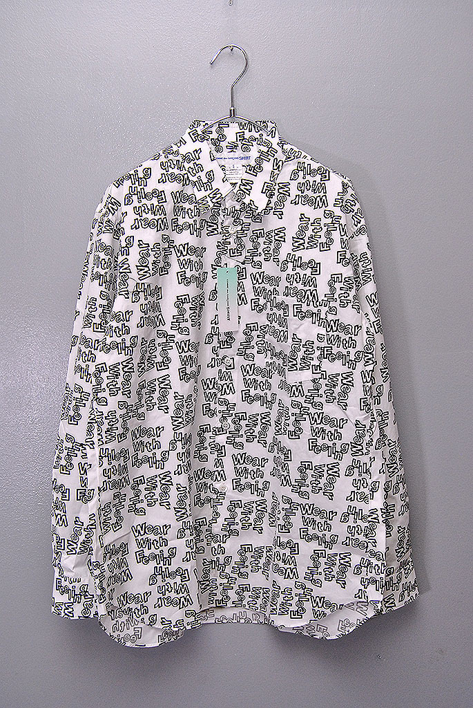 > COMME des GARCONS SHIRT Wear With Feeling プリントシャツ コムデギャルソン シャツ フランス製 レギュラーカラーシャツ 総柄 ホワイト S