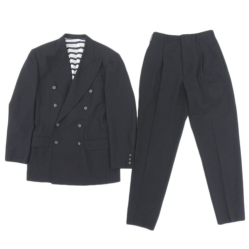 > JEAN PAUL GAULTIER HOMME ジャンポールゴルチエ ビッグラペル ダブル ジャケット タックパンツ セットアップ メンズ ウール 黒 48 46 90's