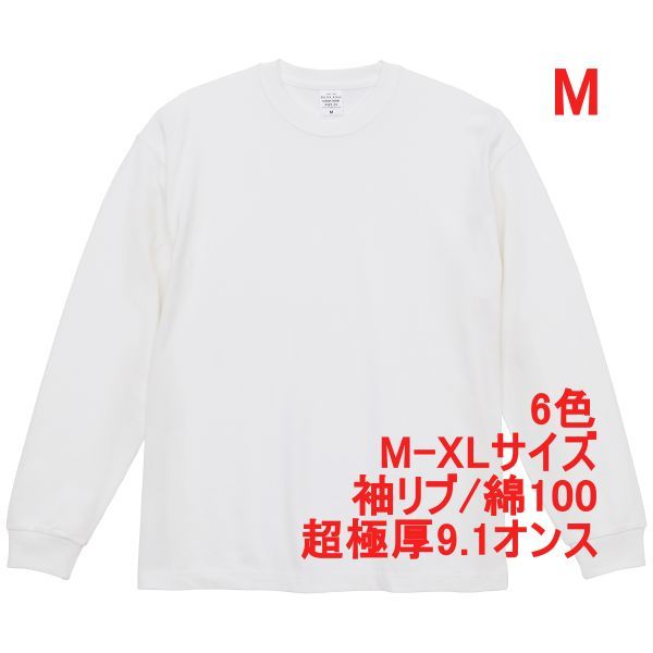 - 長袖 Tシャツ M ホワイト ロンT カットソー 極厚 9オンス 綿100 無地T 無地 袖リブ ビッグシルエット ロンティー A2073 白 442201 4422-01