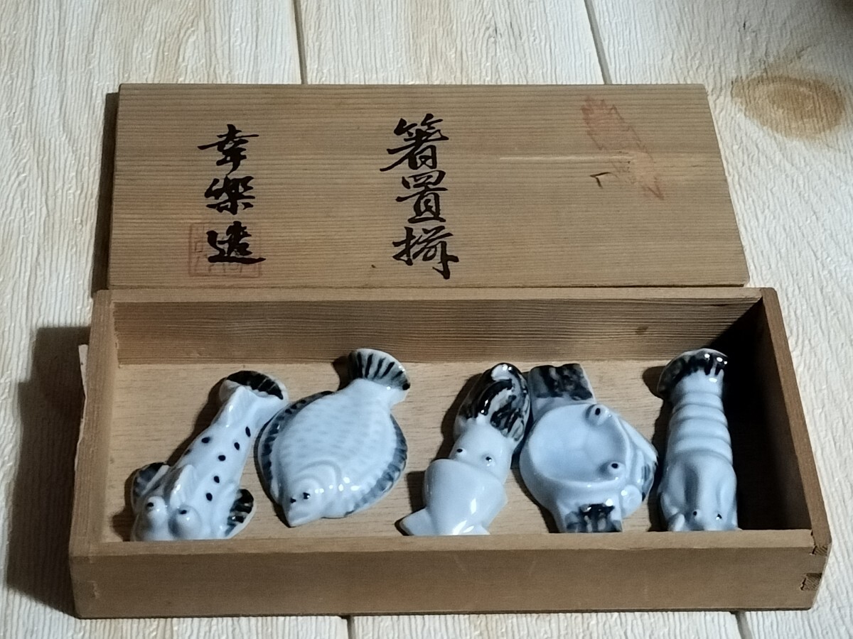 - レア!有田焼!魚介類!箸置! 木箱入り!デッドストックイン!当時物!セット!アンティークコレクション!パイオ2