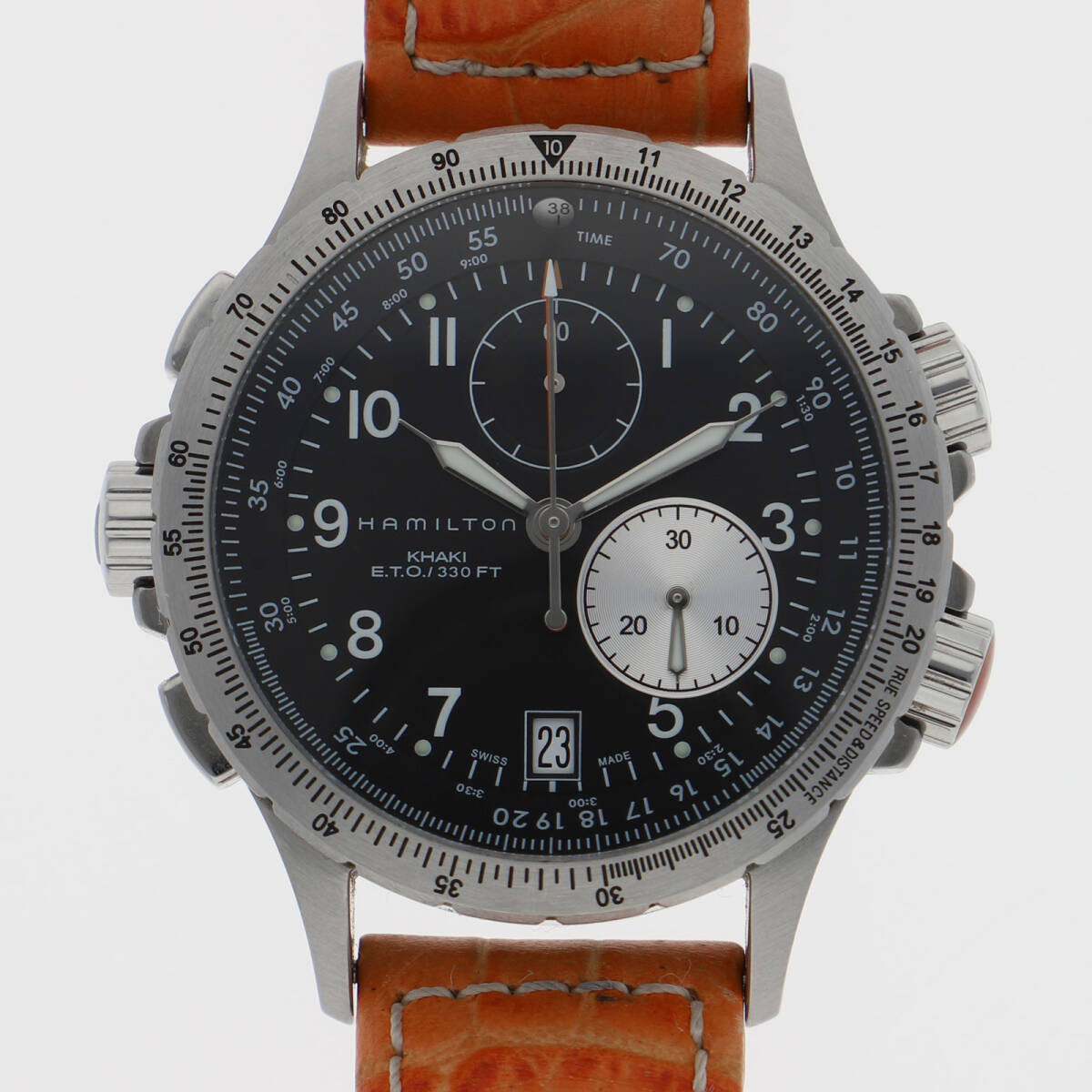 > HAMILTON ハミルトン H776121 ブラックダイヤル SS/レザー クオーツ メンズ【128733】