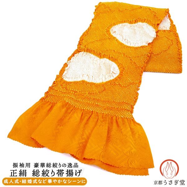 - 正絹 総絞り 帯揚げ oa-034 送料無料 橙色 オレンジ 絹100% 手絞り しぼり 手しぼり 絞り 振袖用