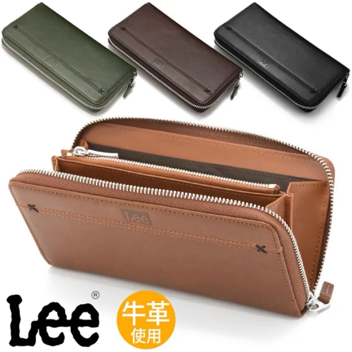 - リー Lee 長財布 ラウンドファスナー クロスステッチデザイン リアルレザー 牛革 束入れ 通帳収納 メンズ レディース 0520691グリーン