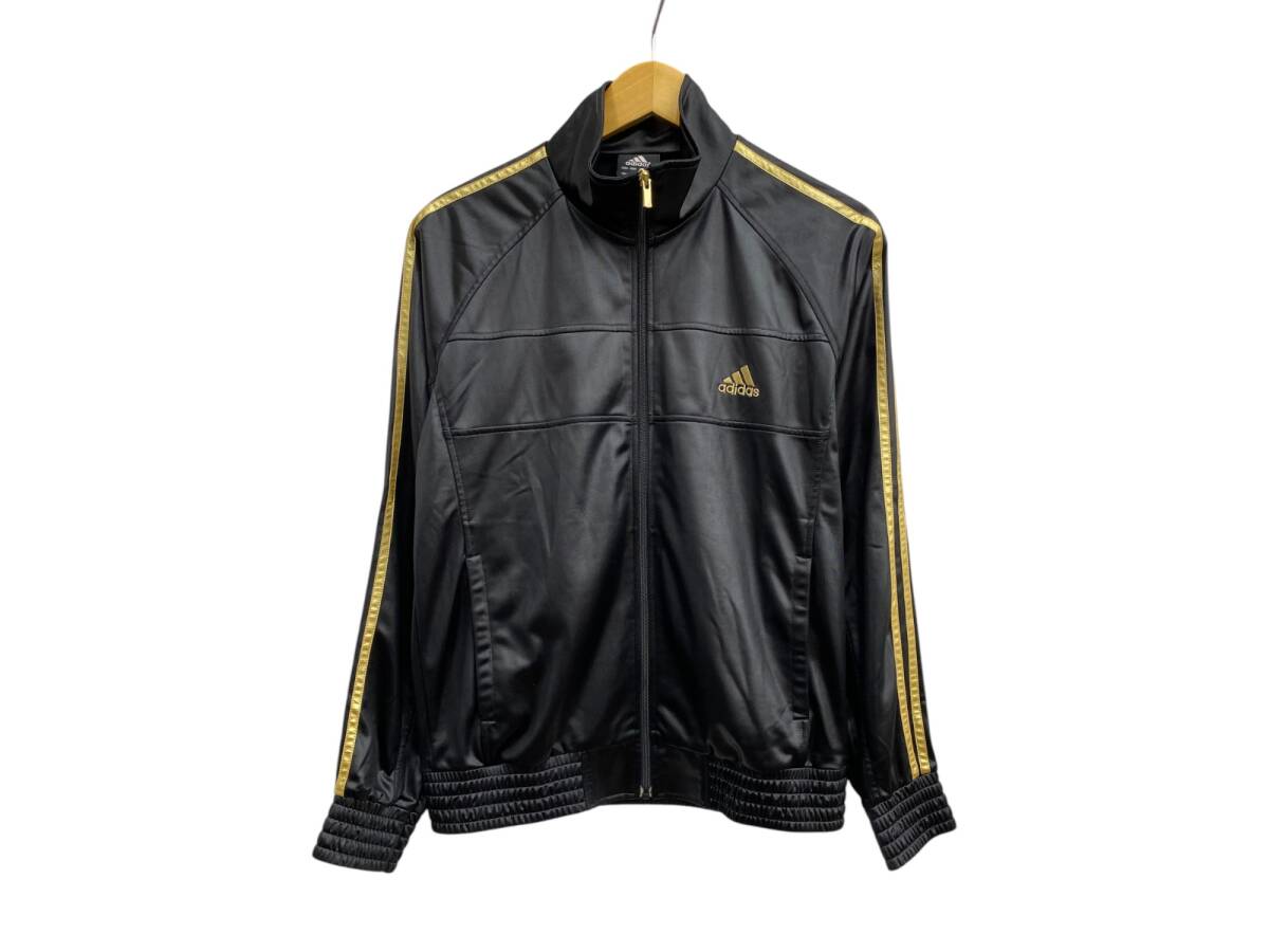> adidas (アディダス) コーティングジャージ 光沢トラックジャケット フルジップ L ブラック ゴールド メンズ/009