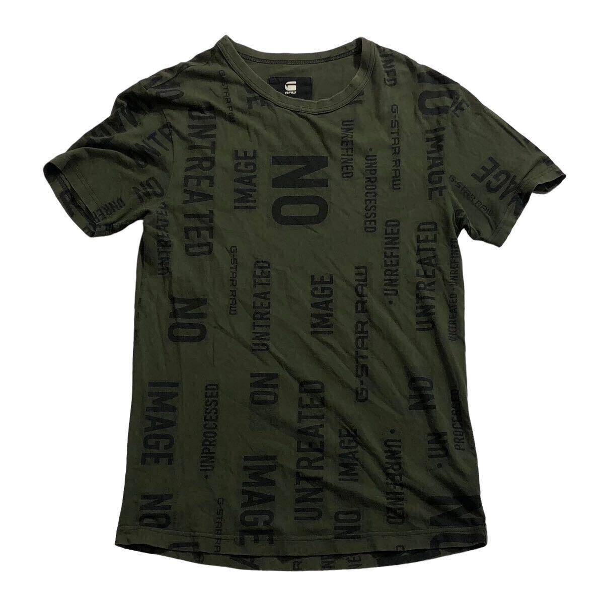 - 送料無料 ■ G-STAR RAW ジースターロウ ■ ロゴ 総柄 プリント 半袖 Tシャツ カーキ XS