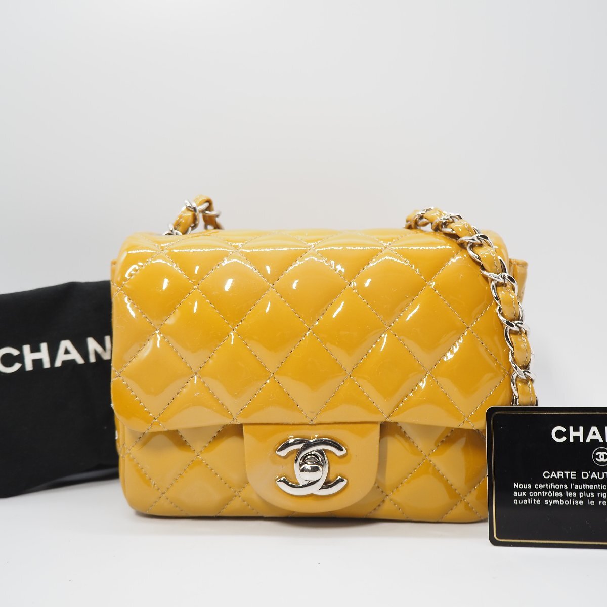 > セール 美品 シャネル CHANEL エナメル ミニマトラッセ ショルダーバッグ 斜め掛け イエロー 中古 A460