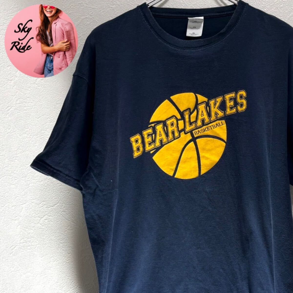 > GILDAN BEAR LAKES バスケットボール メンズ ヴィンテージ ビッグプリント Tシャツ 2XL ビッグシルエット ネイビー 古着 #SB0044