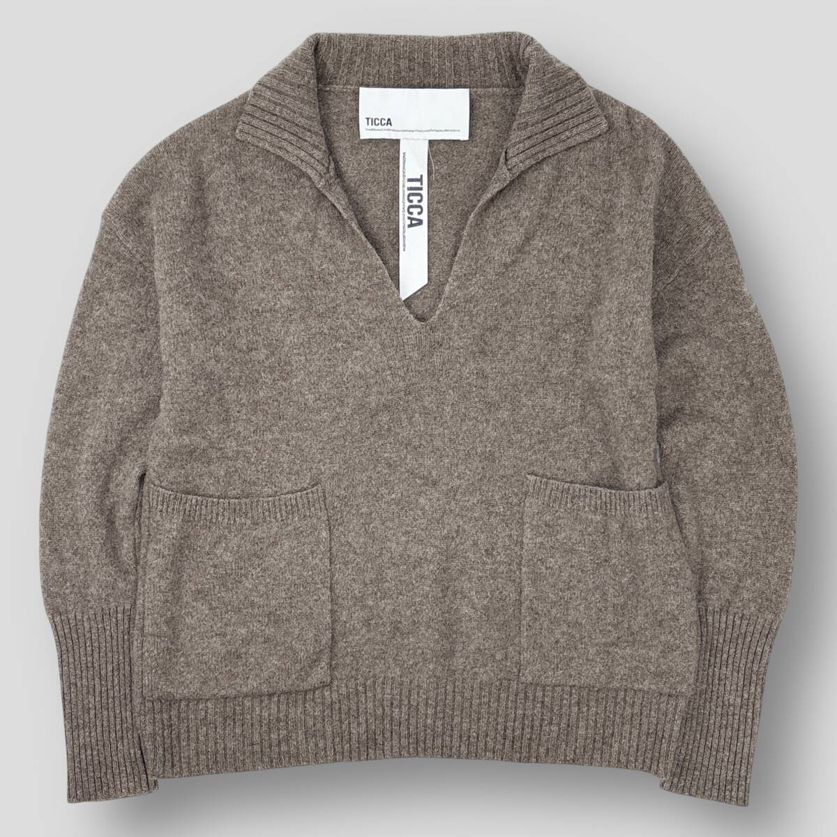 > 美品 TICCA / ティッカ 21AW ヤク スキッパー プルオーバーニット 0213422243 / TBAA-243 キーネック 長袖 ブラウン SSM4920