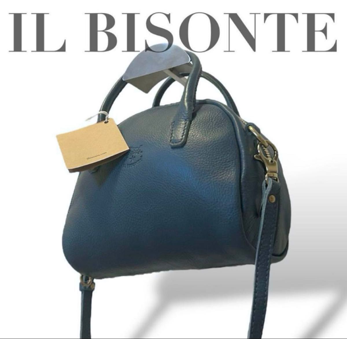 - 未使用 タグ付き イルビゾンテ IL BISONTE ハンドバッグ ミニショルダーバッグ 2way レザー 本革 ネイビー ブルー
