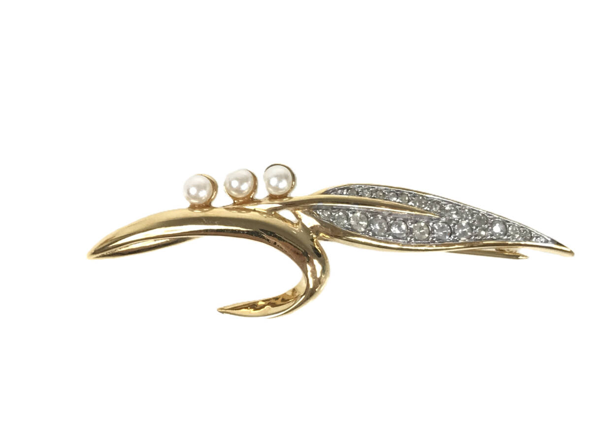 - ニナリッチ NINA RICCI リーフ フェイクパール ラインストーン ブローチ ゴールドカラー YAS-12172