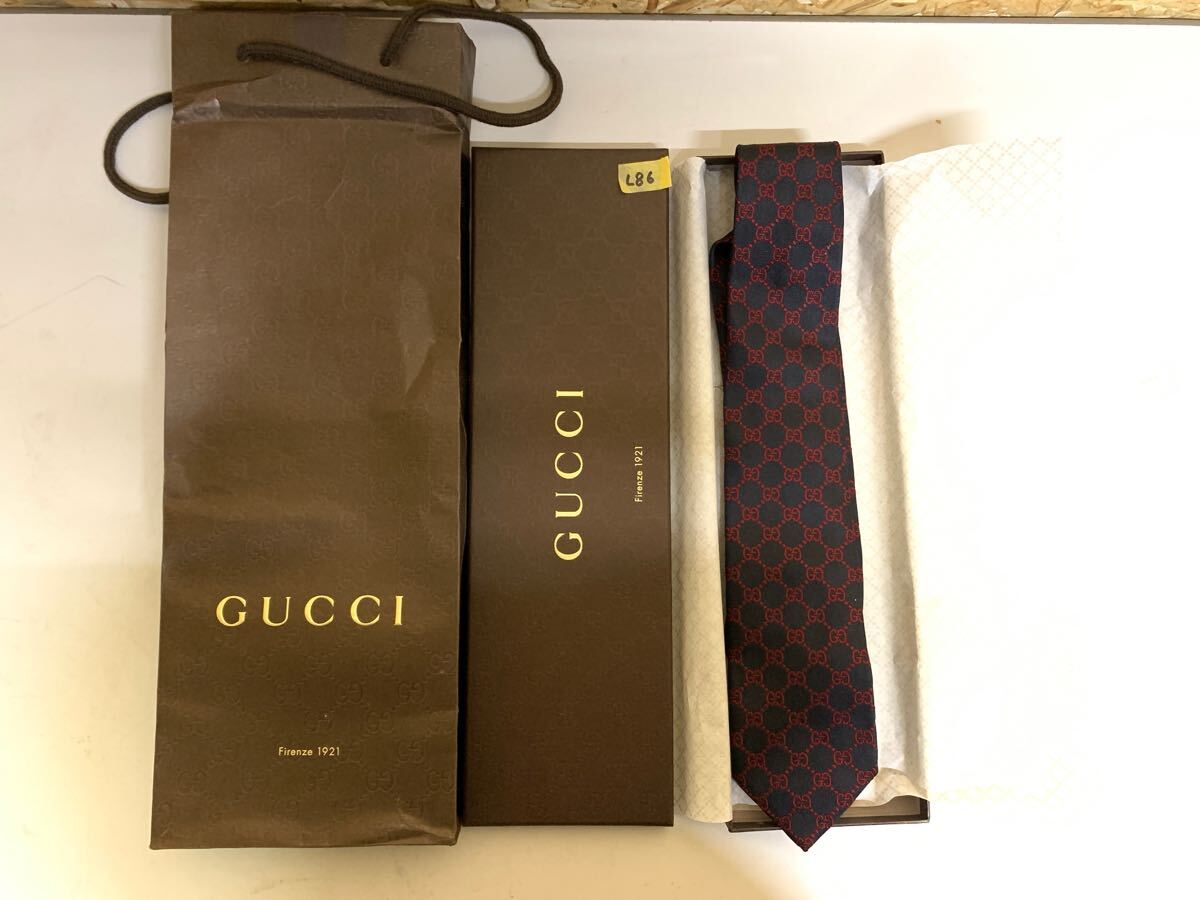 - GUCCI グッチ ネクタイ ビジネス 総柄 モノグラム GG 紳士 冠婚葬祭 ネイビー レッド 箱付き 専用袋 ギフト L86
