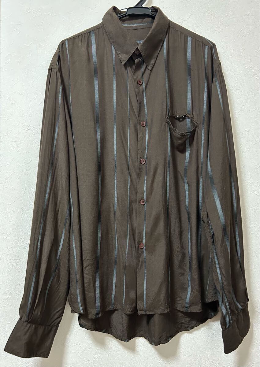 - 【美品】ADOLFO DOMINGUEZ アドルフォドミンゲス長袖シャツ(Mサイズ)/ストライプ柄/ブラウン