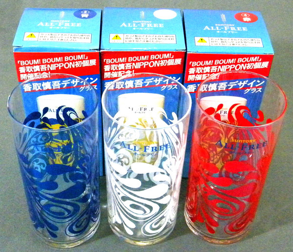 > ◆ サントリー オールフリー ◆ 香取慎吾 デザイングラス ◆ 日本製・非売品・容量440ml 【3点セット】