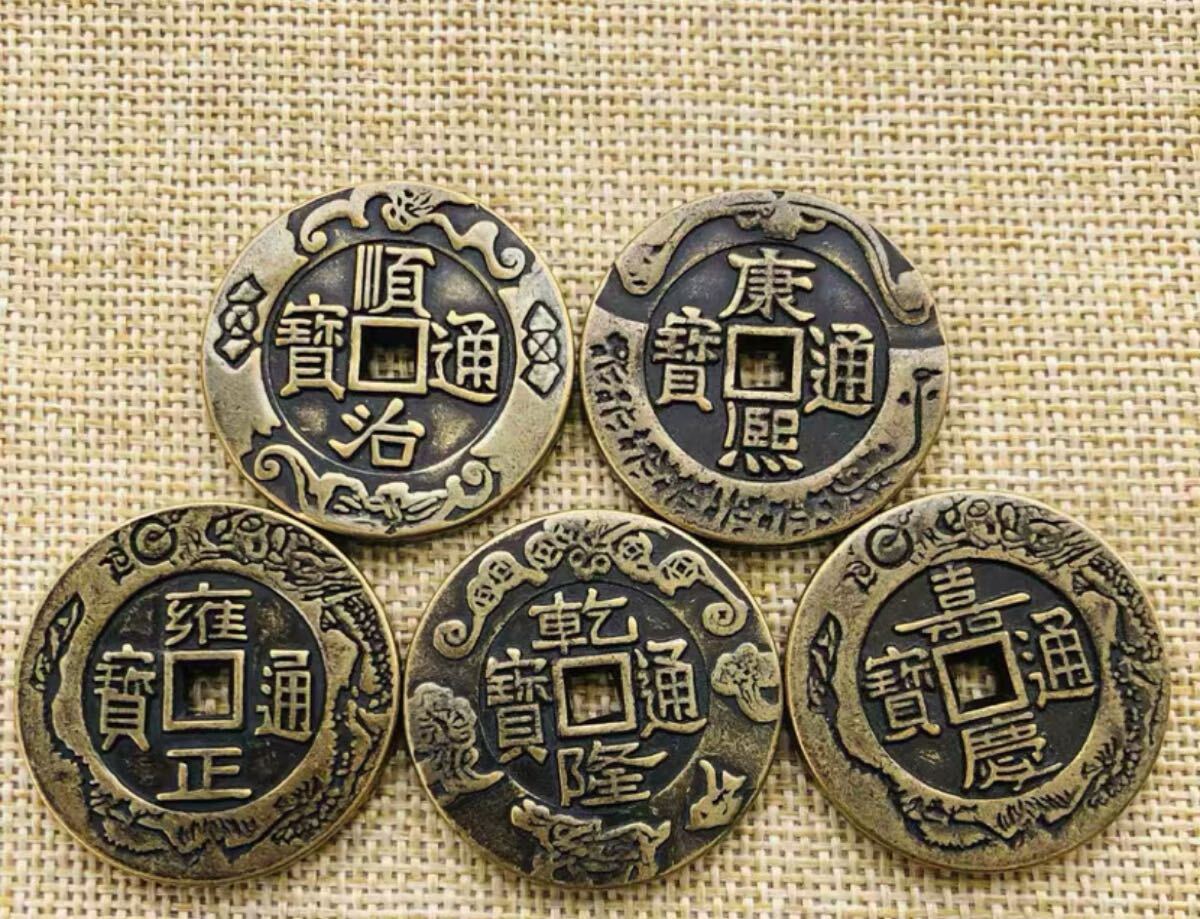 > 希少 中国 清朝末年 5帝硬貨 5枚分 骨董品 古物 コレクション 収蔵品 純銅 方孔銅銭 彫花銅銭 コイン 古銭 貨幣 アンティーク