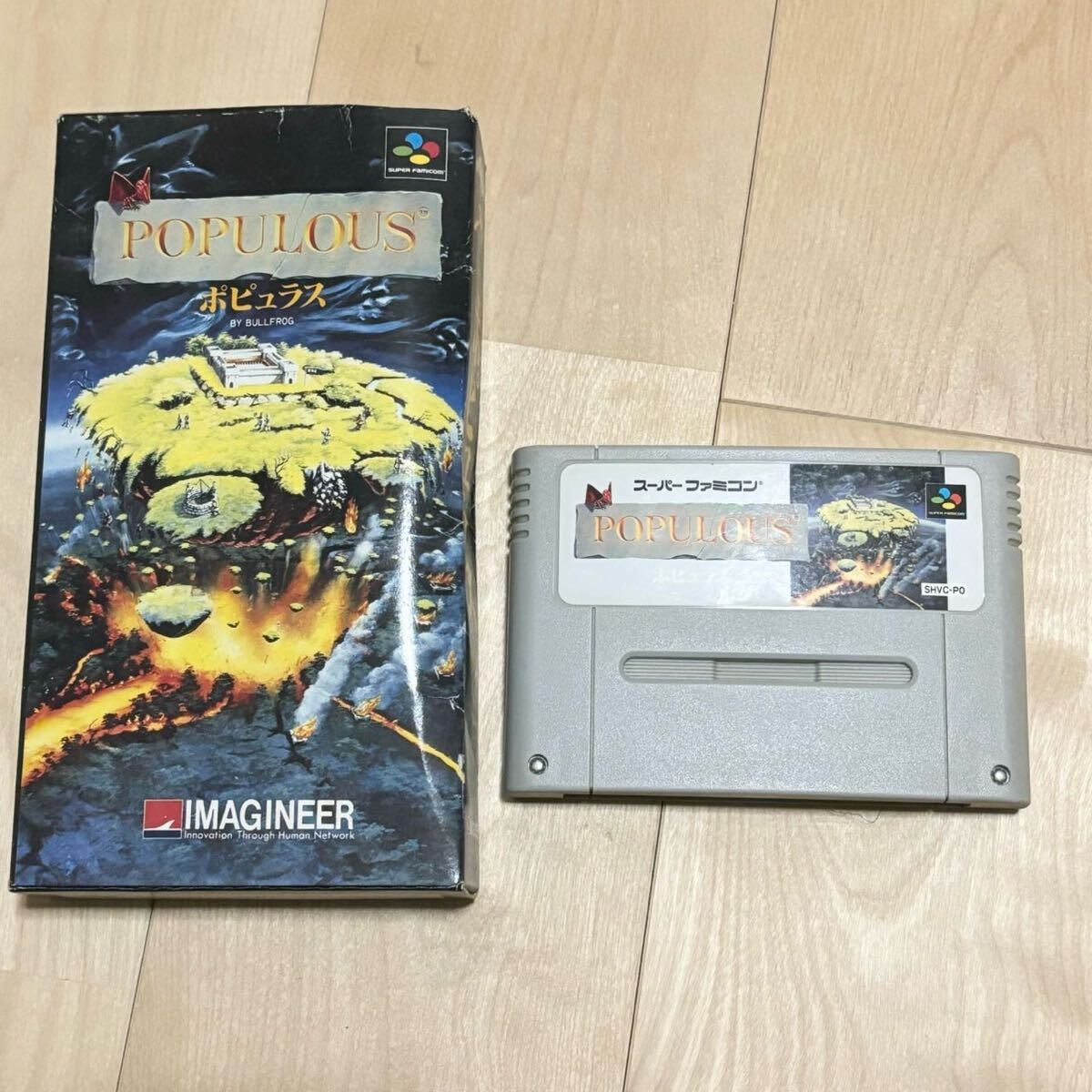 > SFC POPULOUS ポピュラス 箱付き 任天堂 スーパーファミコン レトロゲーム スーファミ BULLFROG IMAGINEER イマジニア株式会社 Nintendo