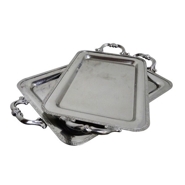 - ★※◆HH2814|トレイ 角盆 手付 大小2枚セット ステンレス バイキング ビュッフェ 中古