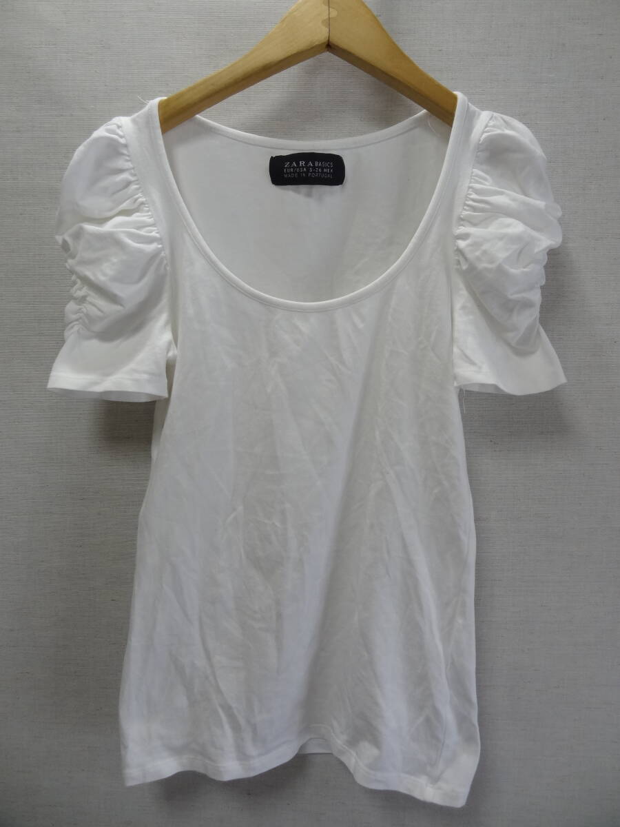 - 全国送料無料 ザラ ZARA BASICS レディース 綿90%素材ウレタン10%素材 ストレッチカットソーパワーショルダー Tシャツ Sサイズ