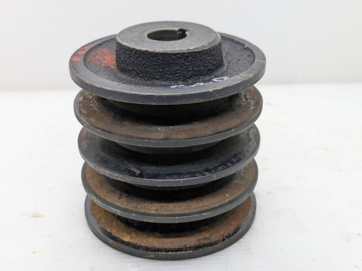 > No.540●4連プーリー●Bベルト●軸径Φ18mm●鍵幅5mm●外径Φ90mm●全体厚み93mm●発動機用●エンジン用●パーツ●部品