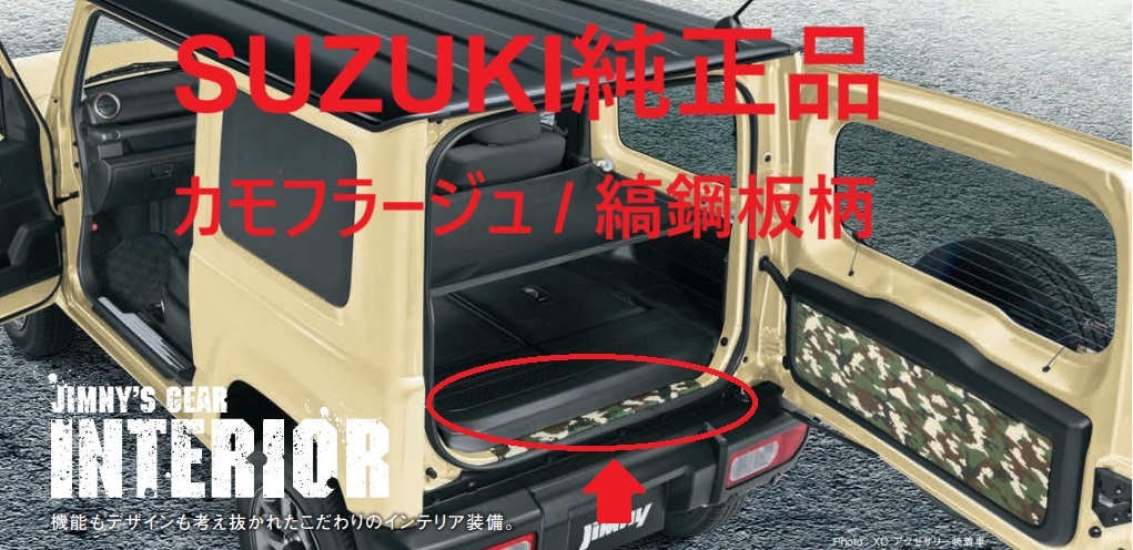 > 【新品 スズキ純正 送料無料】ジムニー JB64W / リヤゲートメンバーガーニッシュ / 貼付タイプ / カモフラージュ / 縞鋼板柄