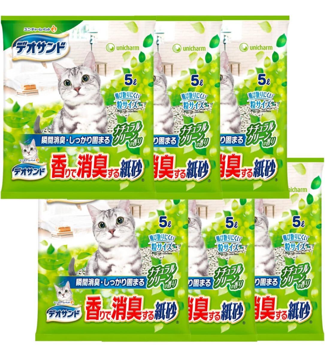 - デオサンド 猫用 サンド 香りで消臭する 紙砂 ナチュラルグリーンの香り 30L(5L×6) おしっこ ペット用品 ユニチャーム