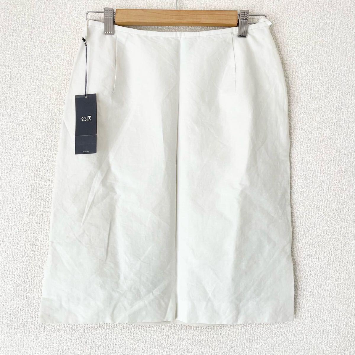 > 定価17000円★新品 23区 オンワード樫山 麻 ひざ丈 タイト ミニスカート 40 Lサイズ★春夏 白 ホワイト ウエスト65〜69 ヒップ91〜95 膝丈
