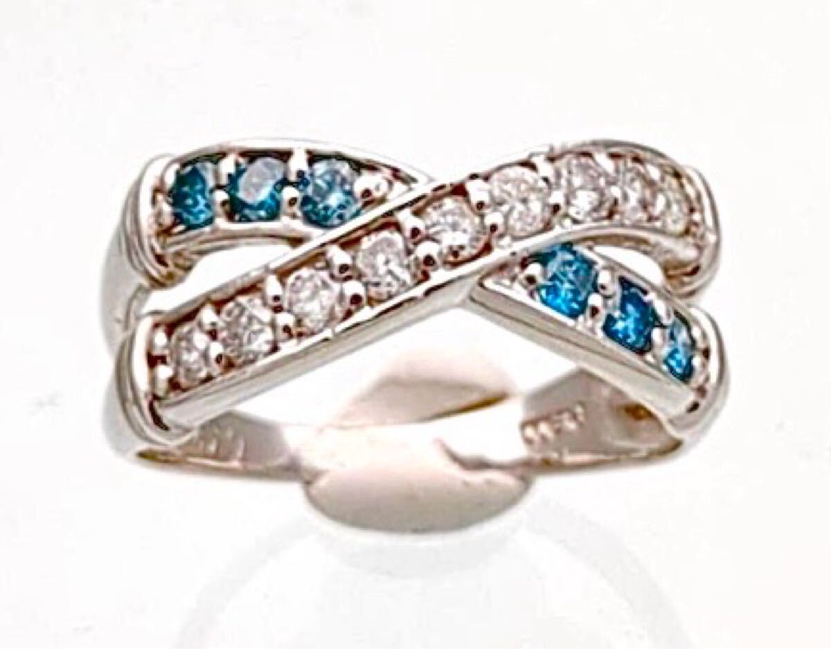 - 絶品ブルーダイヤとダイヤモンド クロスリング総計1.0ct PT900.