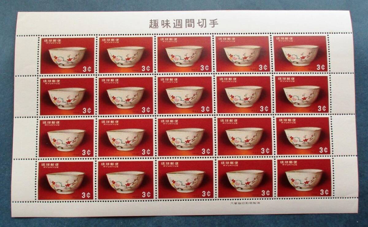 - 沖縄切手・琉球切手 切手趣味週間 赤絵椀 3¢切手 20面シート 108 ほぼ美品です