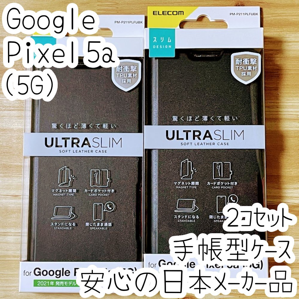- 2個 エレコム Google Pixel 5a (5G) 手帳型ケース 高級感のあるソフトレザー素材 カバー カード ブラック 薄型・超軽量 磁石付 722