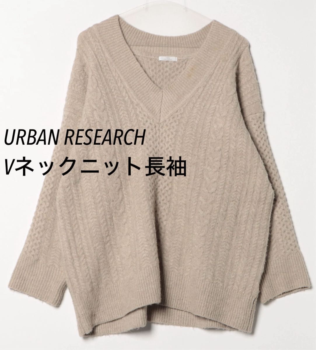 > URBAN RESEARCH Vネックニット長袖 Vネック ニット セーター ベージュ ケーブル