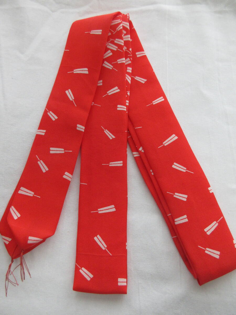 - ☆正絹 腰紐 扇子柄 真紅色地 長さ 約2.15m 巾 約4㎝ ド0039