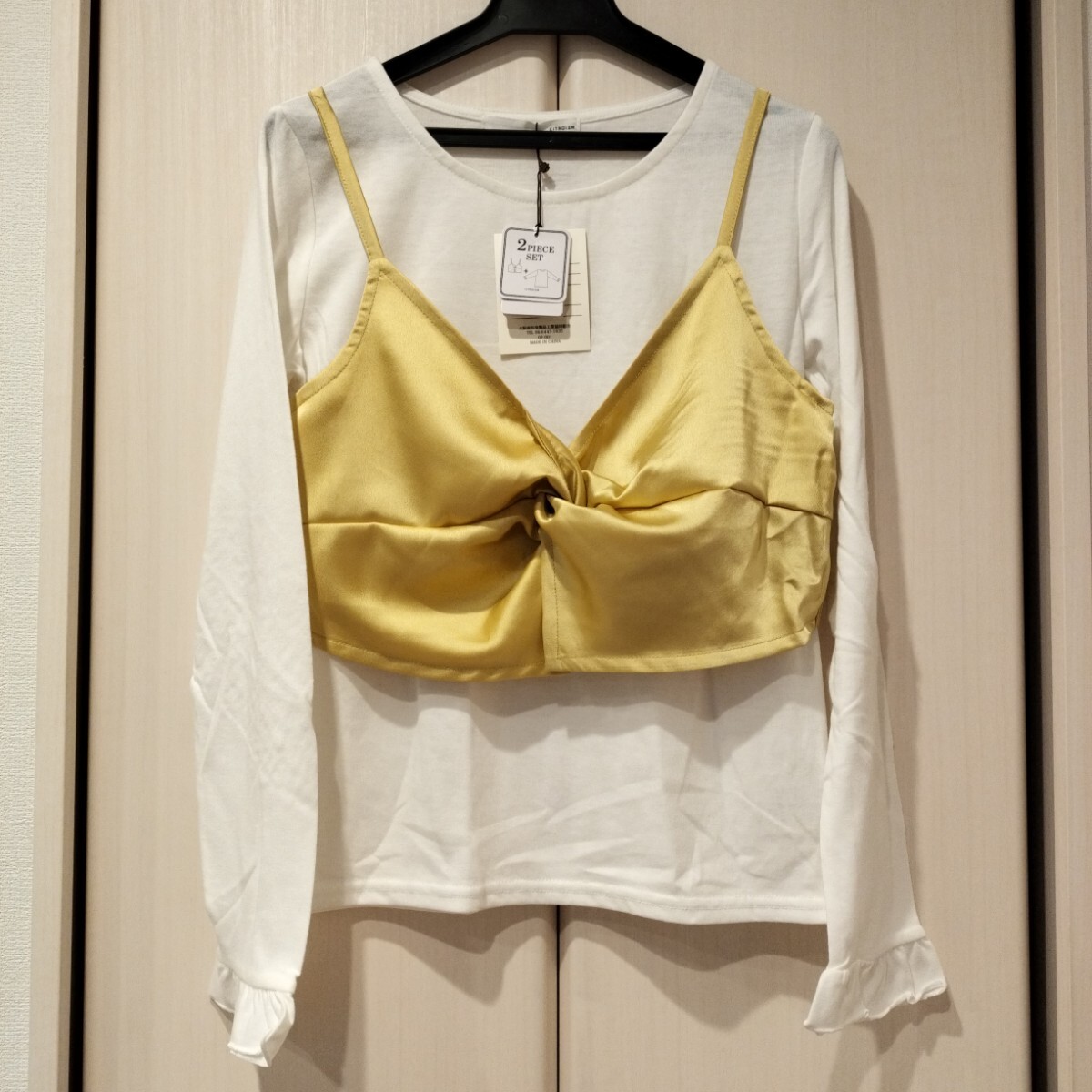 - 新品タグ付 2点セット CITROIZM ねじりキャミ×ロンT レディース 白 長袖カットソー イエロー 黄色 キャミソール 送料無料 匿名配送
