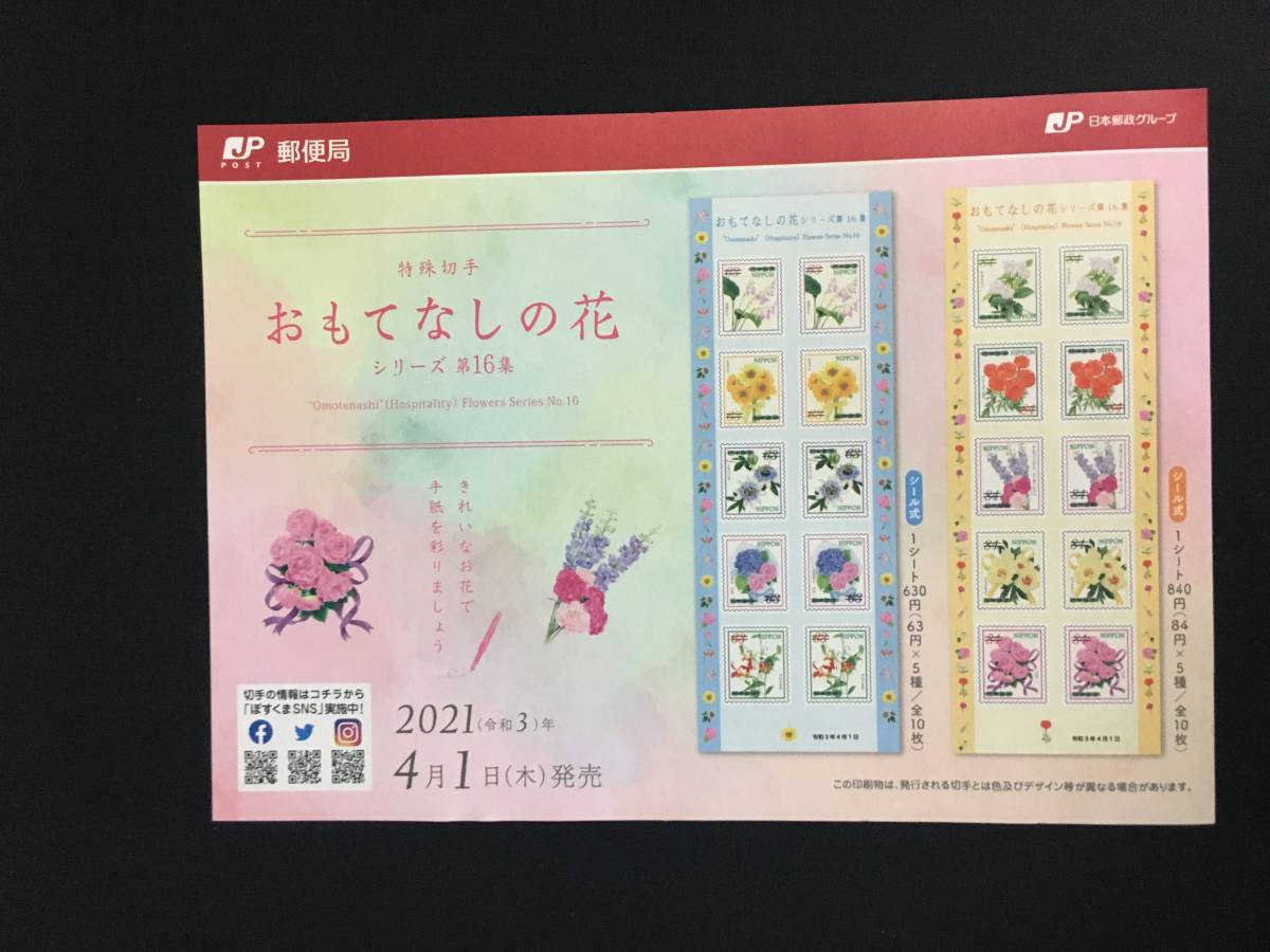- 切手チラシ 2021.04.01発売 【おもてなしの花 第16集】