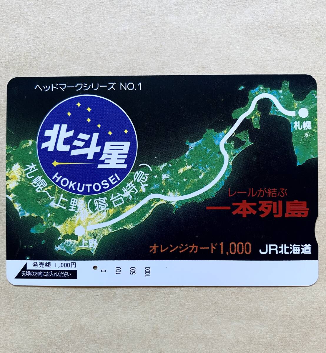 - 【使用済】 オレンジカード JR北海道 ヘッドマークシリーズ №1 北斗星 札幌~上野(寝台特急)